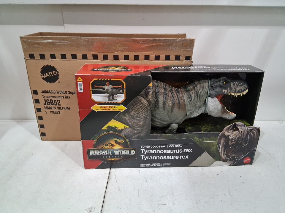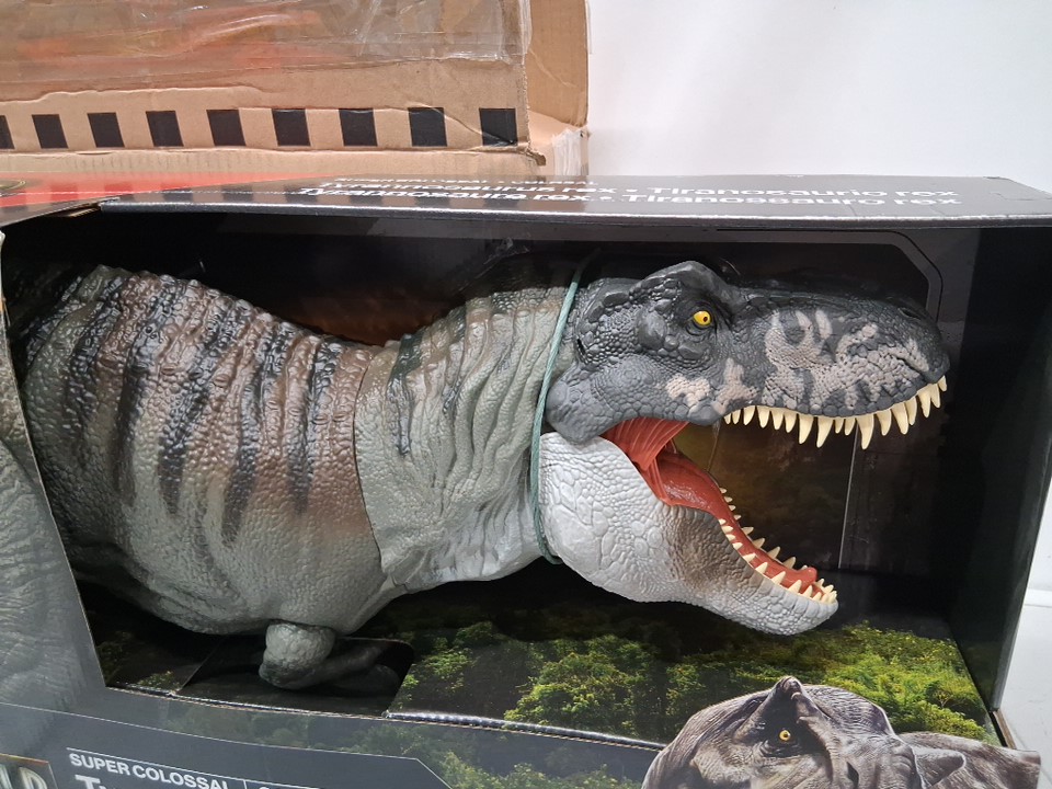 Jurassic World Rebirth Super Colossal Tyrannosaurus Rex t-rex dinosaur movie Action Figure with belly storage compartment and moving joints - 39" - grey (MODEL: jgb52)