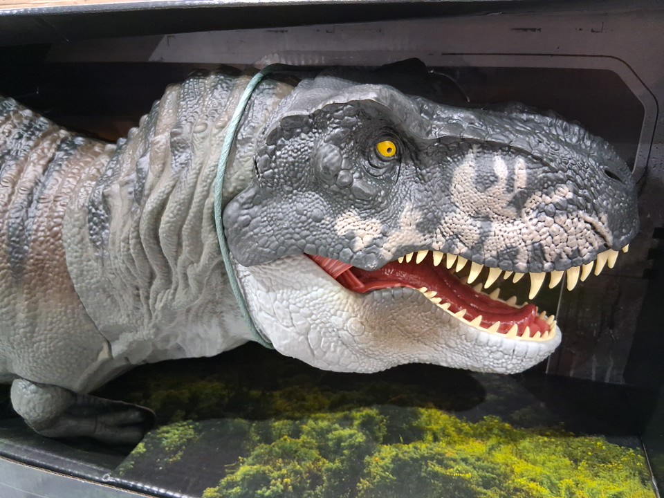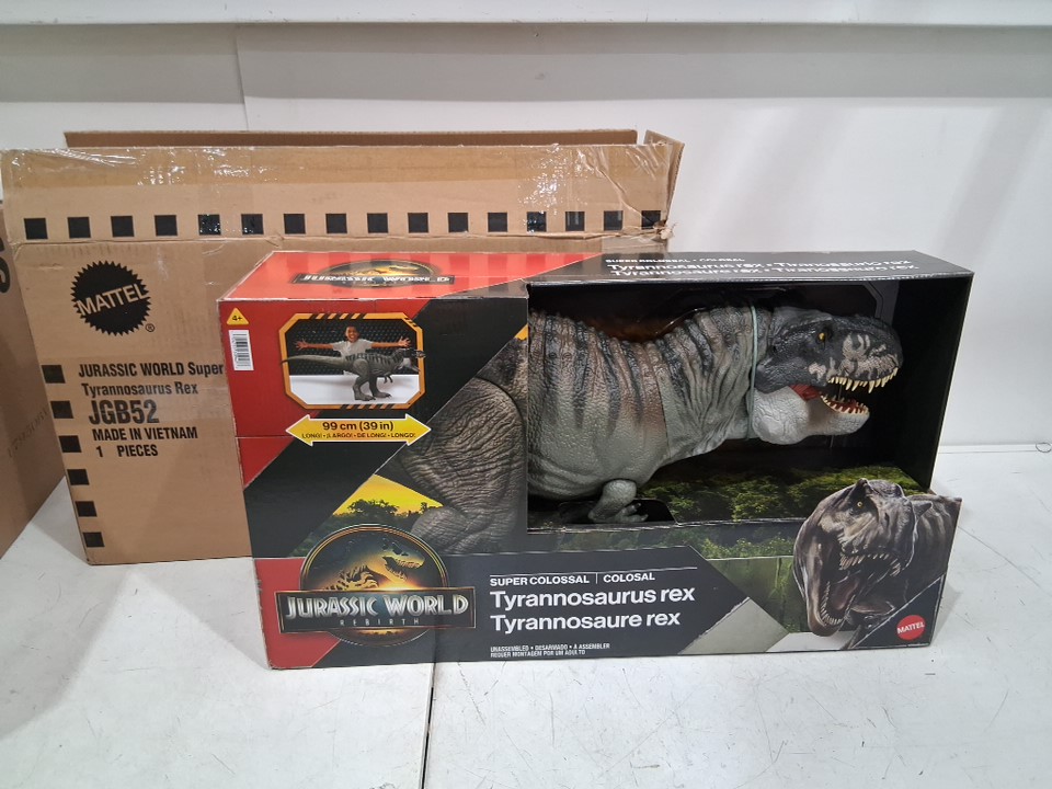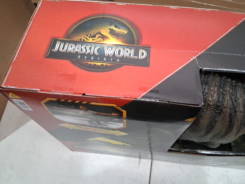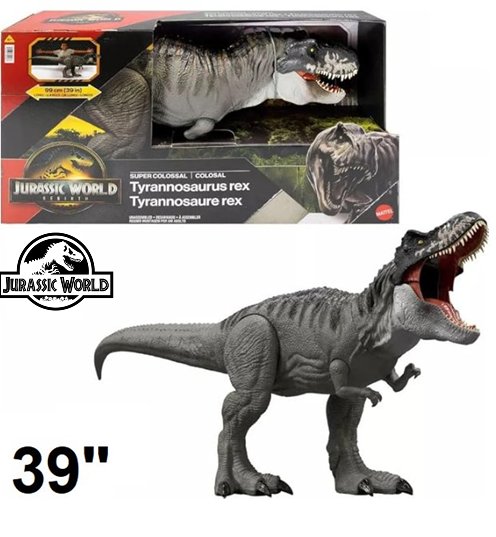 Jurassic World Rebirth Super Colossal Tyrannosaurus Rex t-rex dinosaur movie Action Figure with belly storage compartment and moving joints - 39" - grey (MODEL: jgb52)
