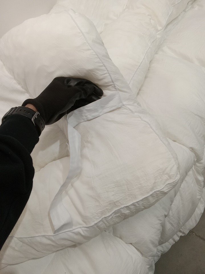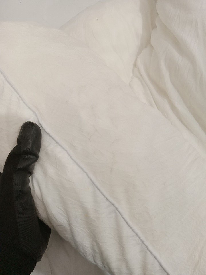 item has dust on it from inspection, it also got an odor and light dirt around indicating it was previously used.