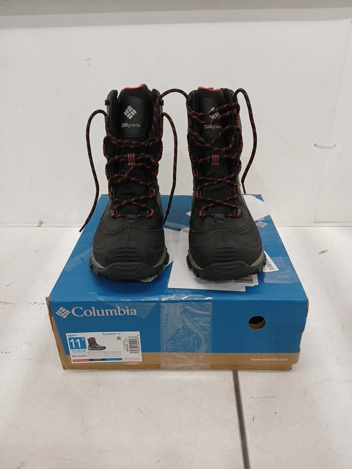 men's columbia bugaboot iii snow boot - size 15 - black/bright red