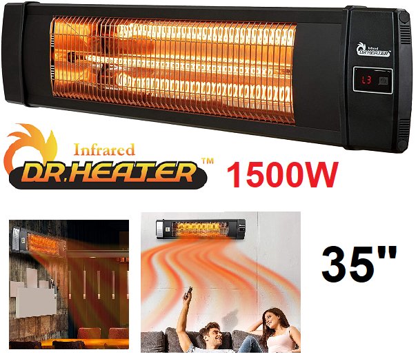Dr. CARBON Infrared Heater 1500W Indoor Outdoor Patio, Garage, RESTAURANT OR LIVING ROOM Wall or Ceiling Mount with Remote, Black (DR-238)