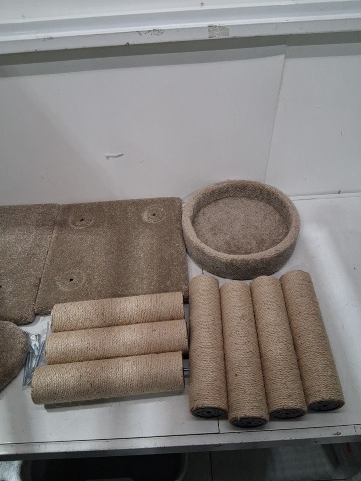 Amazon Basics Indoor Cat & Kittens Multi-Level Climbing Activity Tower with Scratching Posts Cat Tree - 45.9" X 17.7'' - Beige (model: ‎ ZJS-17211-4)