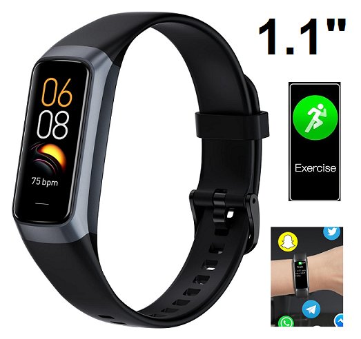 UNISEX KEEP HEALTH Smart BAND Watch & FITNESS TRACKER with Heart Rate, Blood Oxygen MONITOR & 1.1" DISPLAY - BLACK