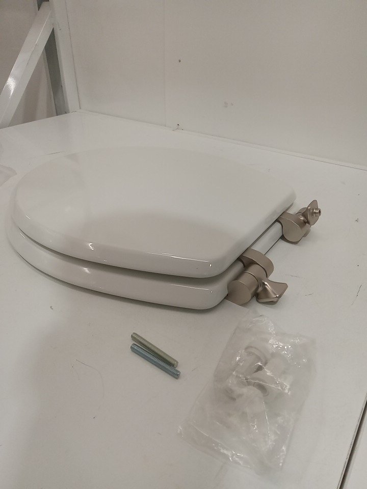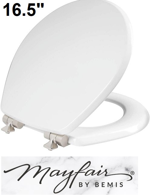 MAYFAIR BENTON ROUND TOILET SEAT WITH BRUSHED NICKEL HINGES, SLOW CLOSE, DURABLE ENAMELED WOOD- 16.5"x14" - WHITE- ‎(MODEL:26NISL 000)