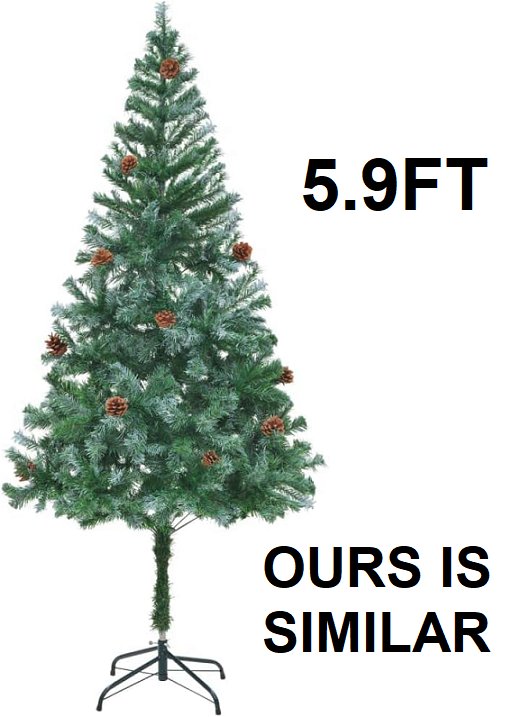artificial christmas tree with stand - pine cones, small tree skirt decor -5.9ft - green/frosted tips