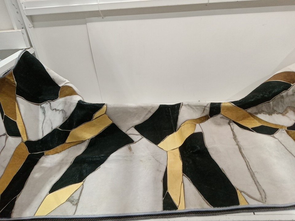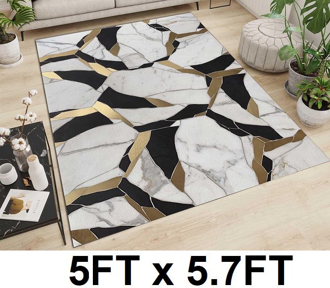 Nordic Geometric non-slip area rug - 5FT x 5.7FT - black/gold/white