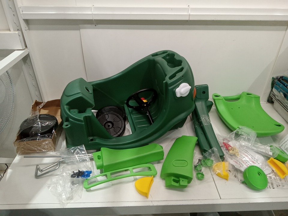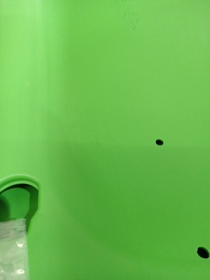 Missing the door, still has pieces that are sealed suggesting it is likely a manufacturing issue. Can likely be used without or be replaced. Scratch on the roof, likely from shipping/handling.
