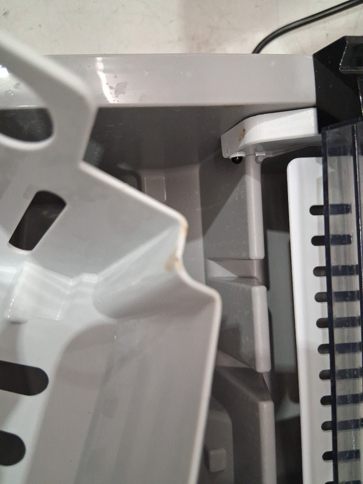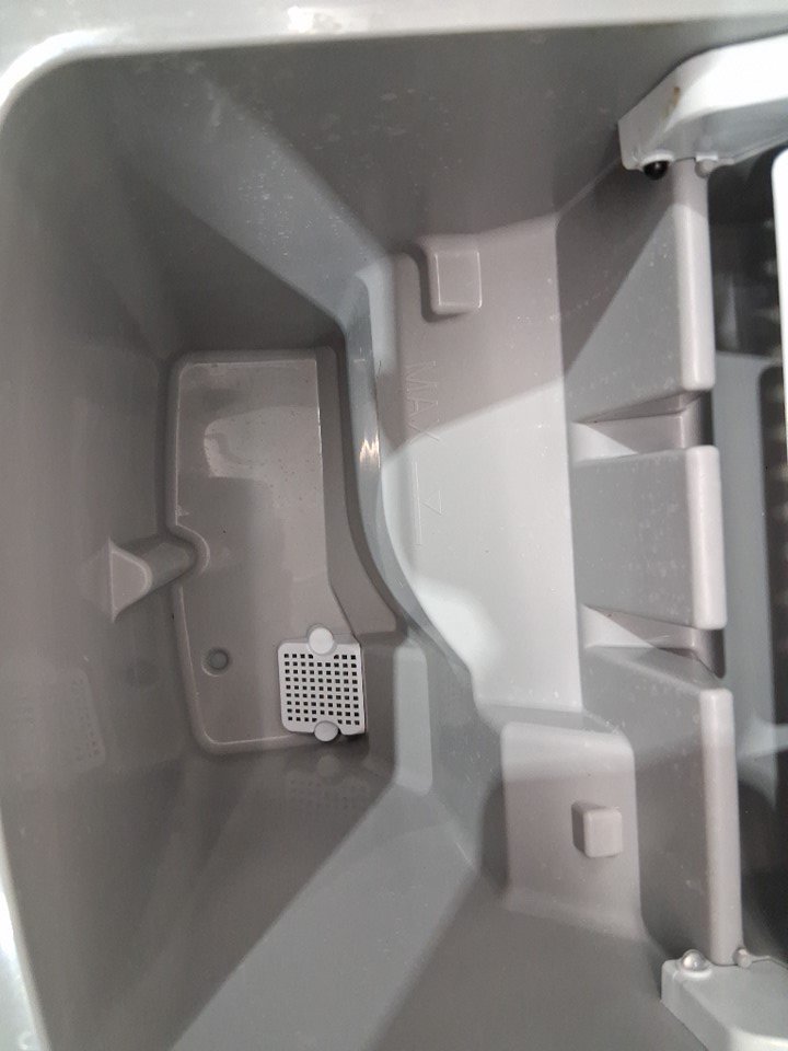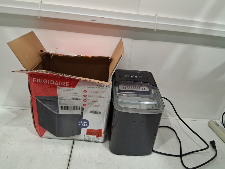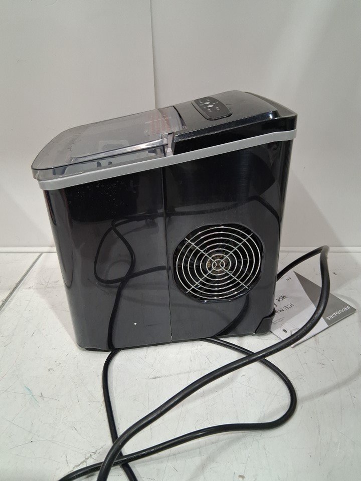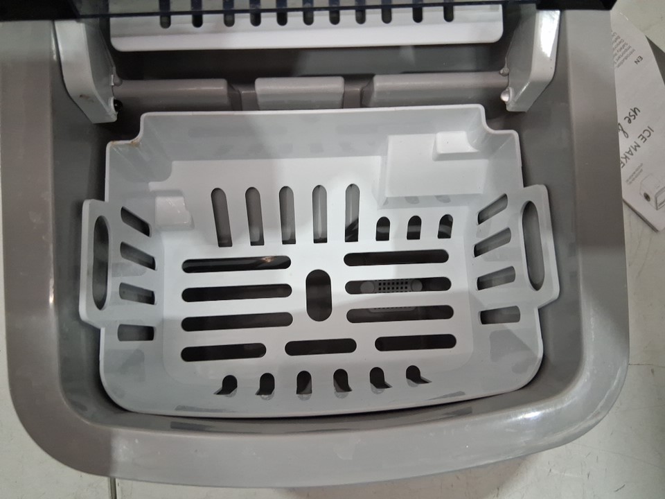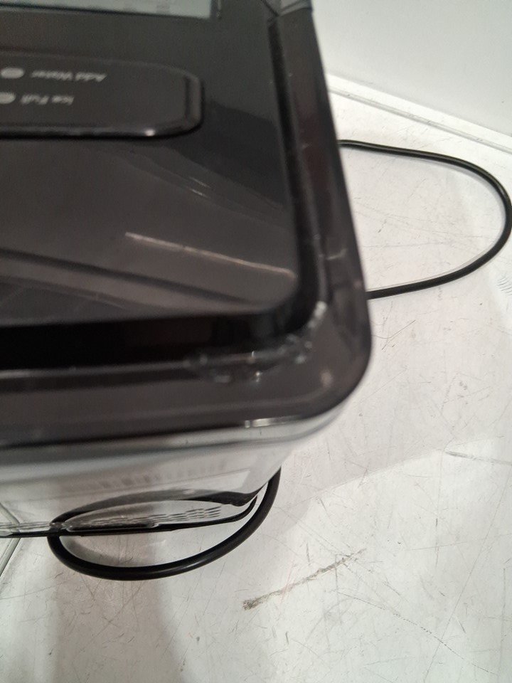 item is dirty, has scratch and scuff marks and a small dent indicating prior use item is missing ice scoop item was tested for basic power only