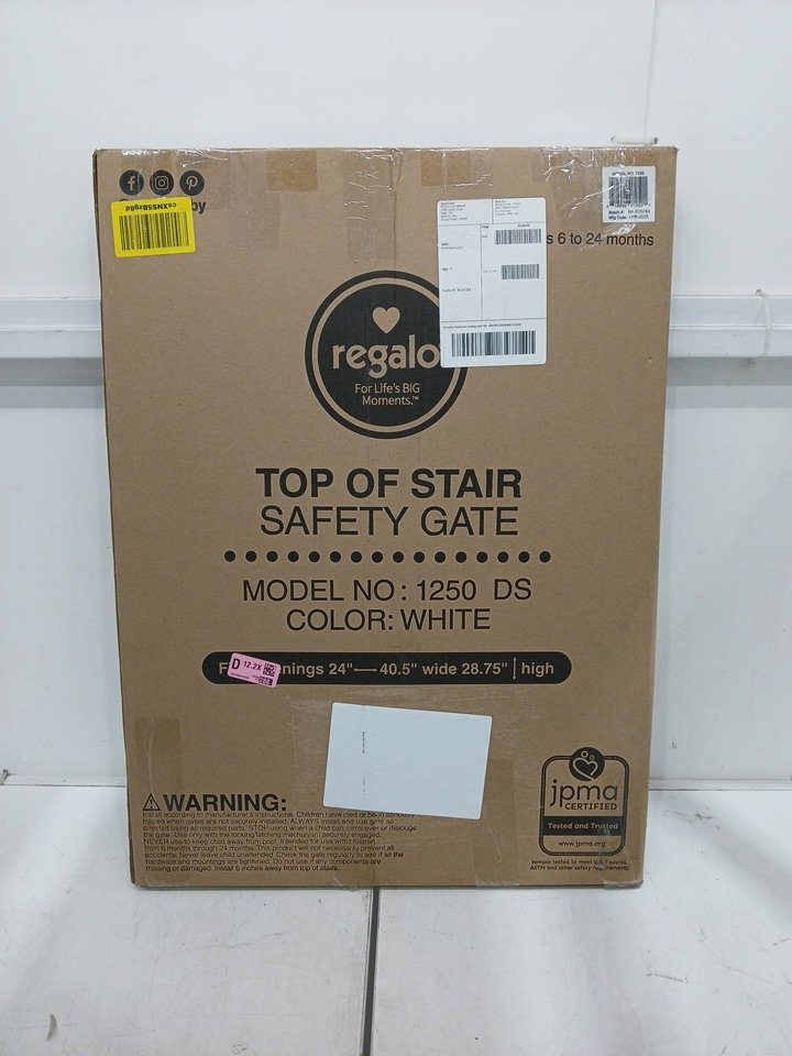 Regalo Extra Wide 2-in-1 Top of Stairway and Hallway Safety Gate with Mounting Kit - 29"x24"-40.5" - White (Model: 1250DS)
