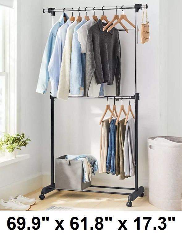 Brightroom Adjustable Double Rod Garment Rack - 69.9" x 61.8" x 17.3" - Black/Silver