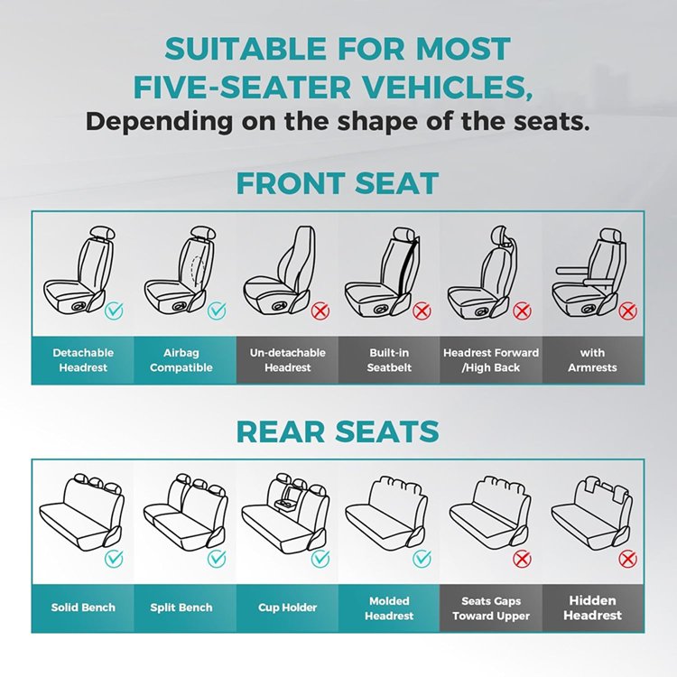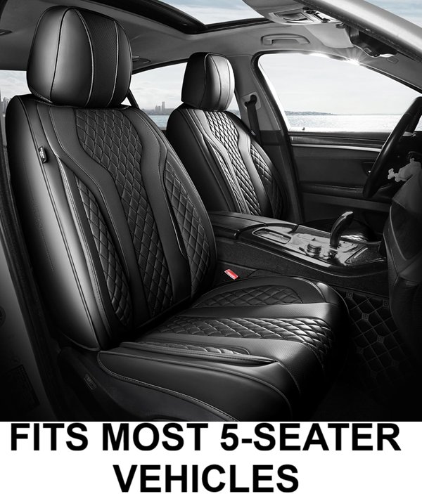Full Set FEINEPRO Breathable Waterproof Faux Leather Seat Covers - Suitable For Most 5-Seater Vehicles - Black