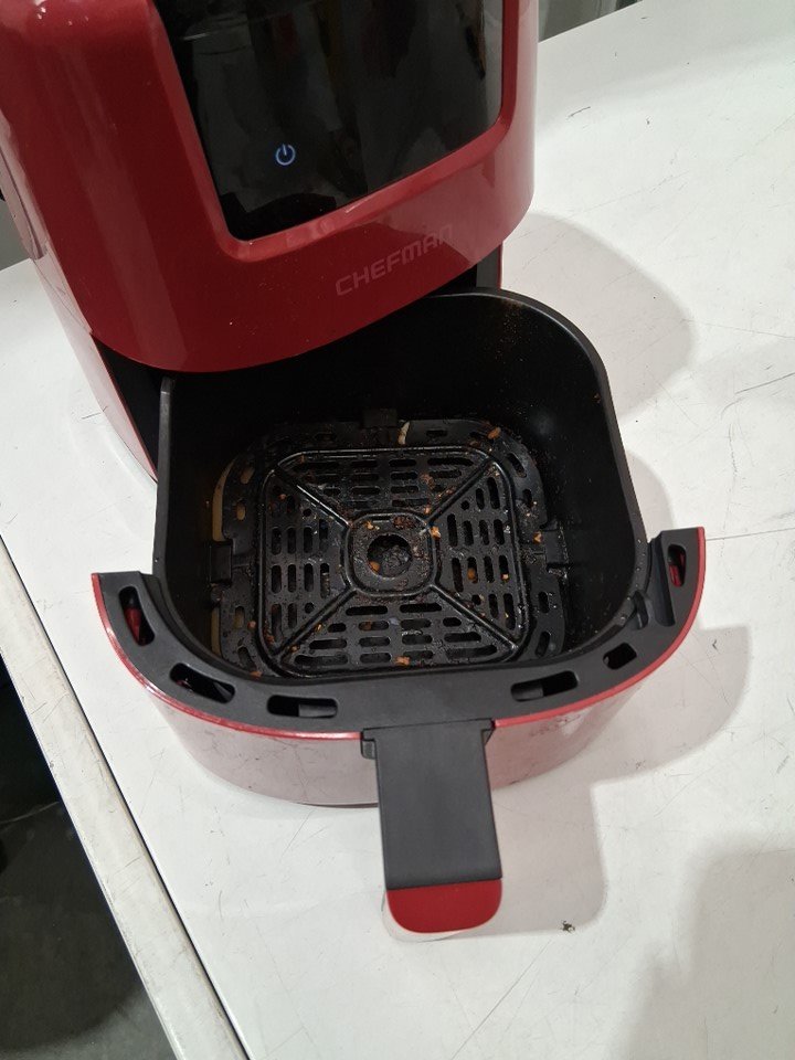there is a lot of food build up on the inner basket as well as some oil staining on the outer. tested for power.