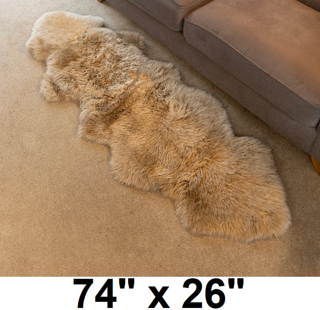 Double Sheepskin Rug for living room space - 74" x 26" - beige
