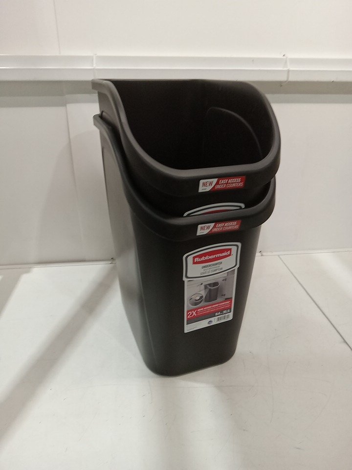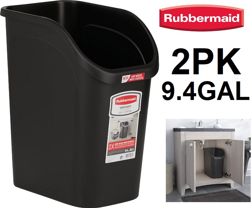 2PK RUBBERMAID UNDERCOUNTER WASTEBASKETS FOR WASTE/RECYCLING - 9.4GAL - BLACK