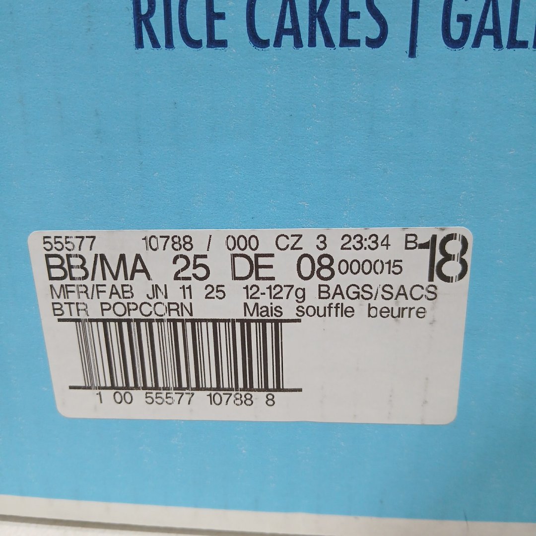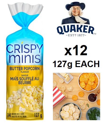 12pk *recently expired* quaker crispy minis gluten free brown rice cakes - butter popcorn - 127g/each
