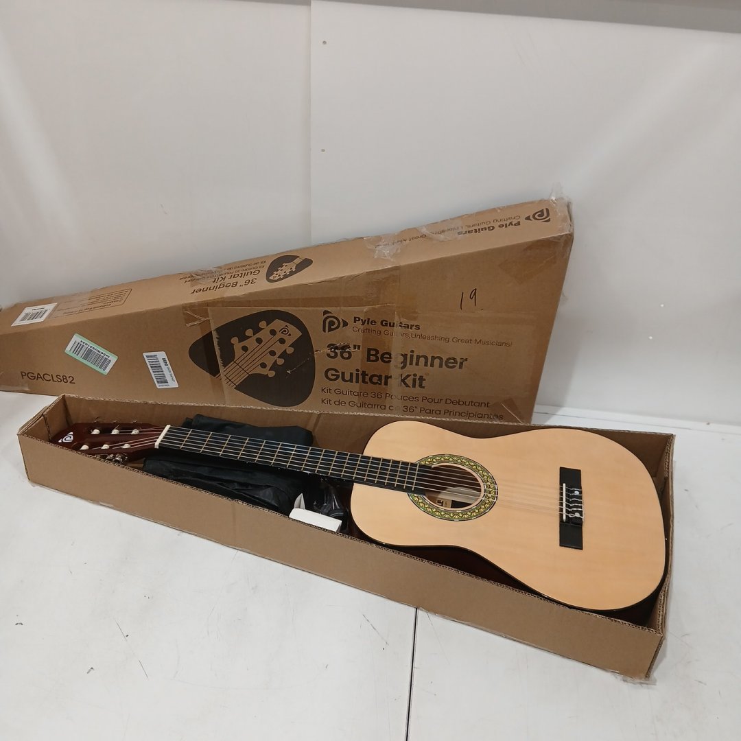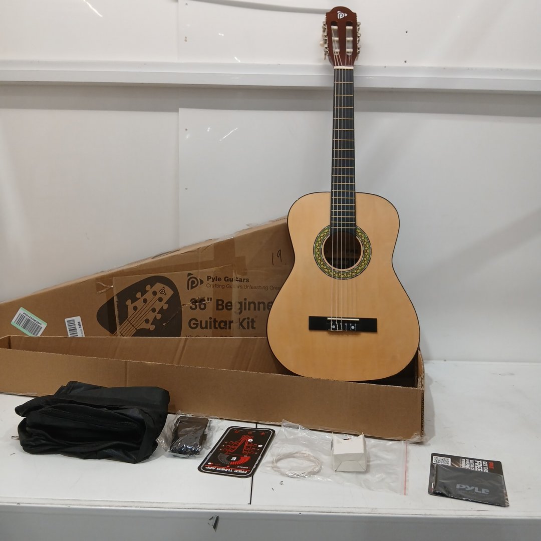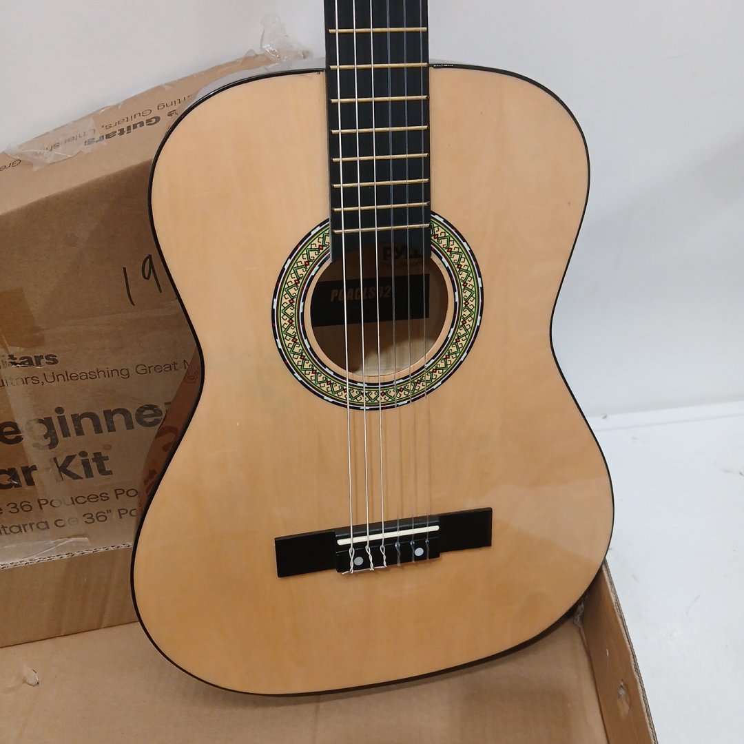PYLE 36" left HANDED 3/4 SIZE CLASSICAL ACOUSTIC GUITAR KIT FOR BEGINNER STUDENTS - NATURAL gloss LINDEN WOOD (MODEL: PGACLS82)