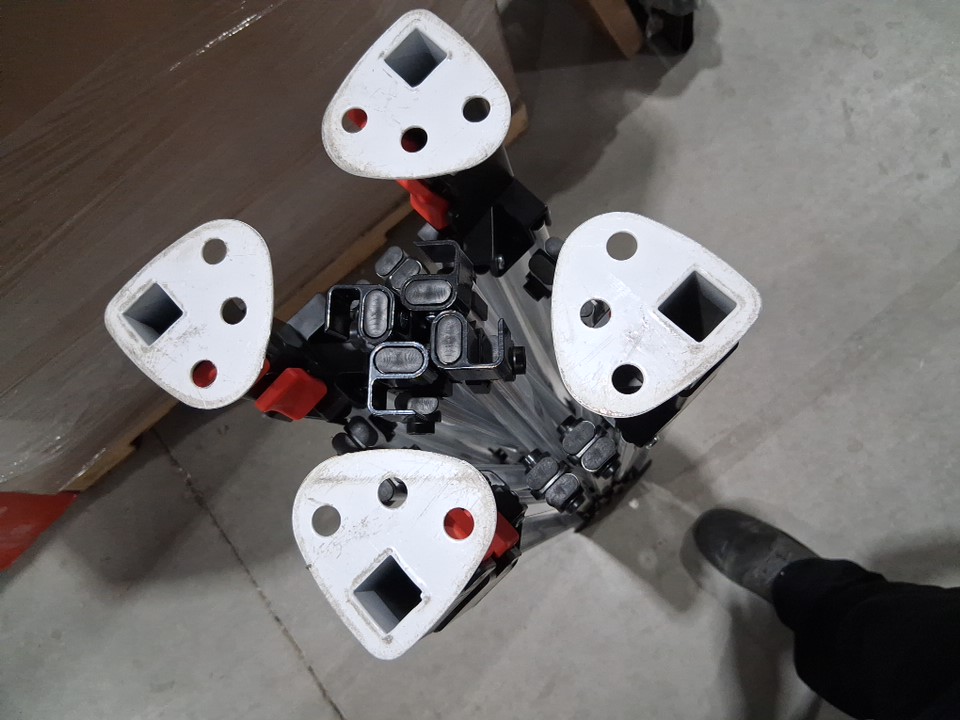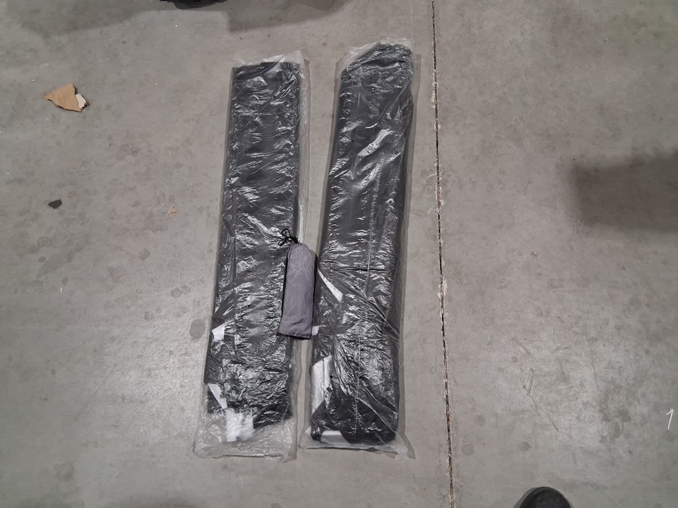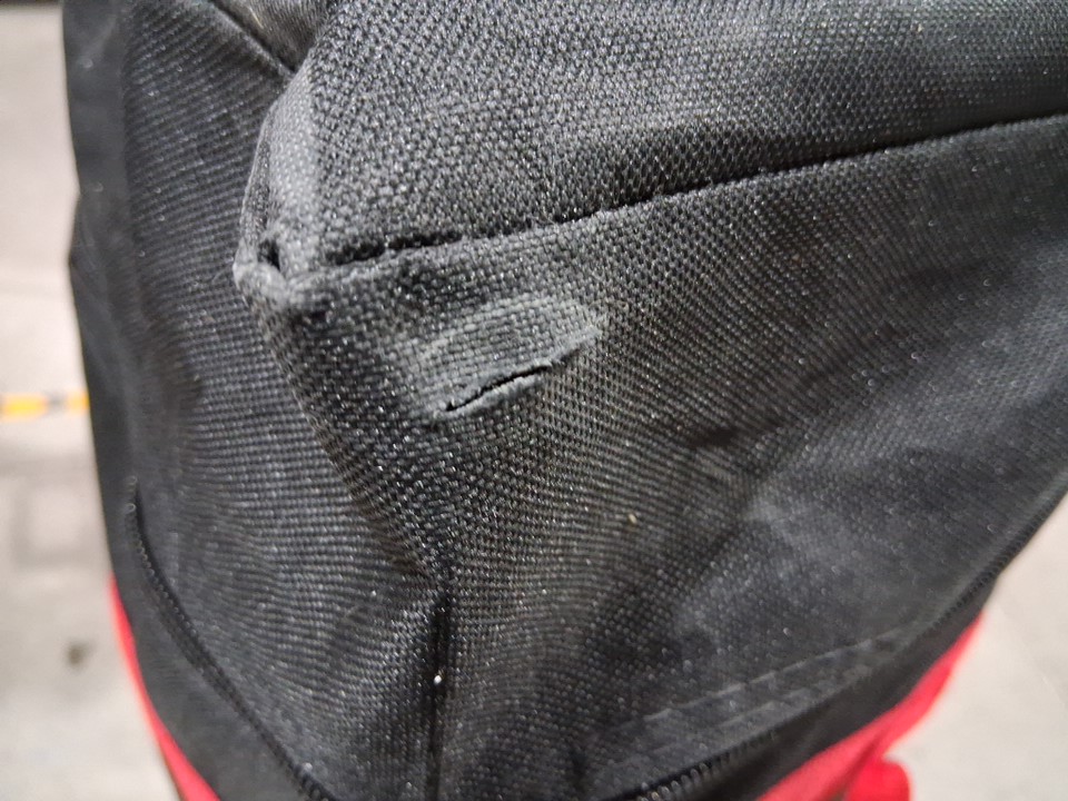 feet are scratched indicating prior use, carry bag has a small rip in it indicating prior use