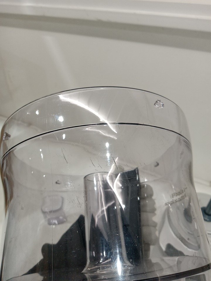 There are scratch marks on the sides of the main cup jar and minor water stains due to previous use. Tested for power and motor function only. (Please see photos)