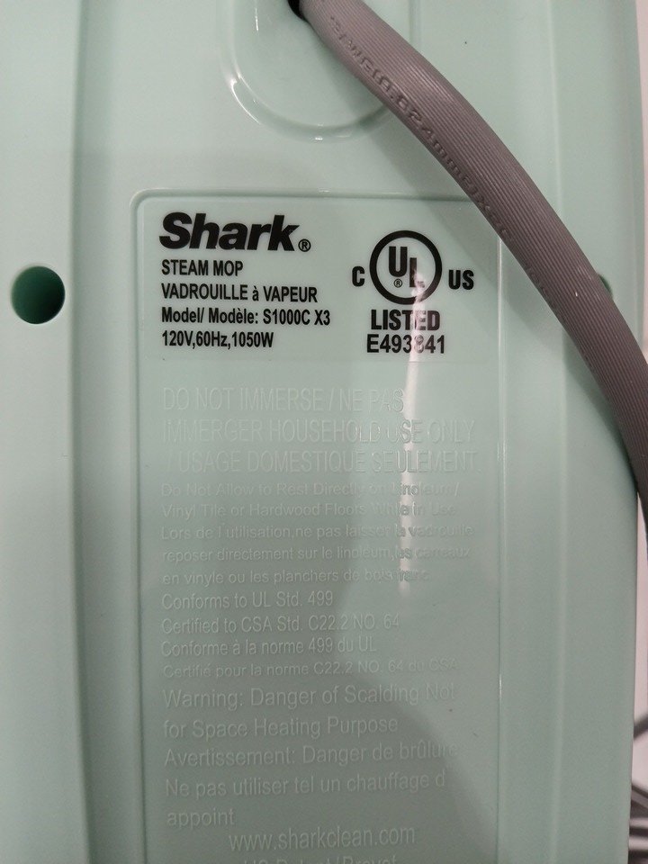 SHARK CLEAN & SANITIZE STEAM MOP FLOOR CLEANER - 375ml water tank - WHITE/SEAFOAM (MODEL: S1000C)
