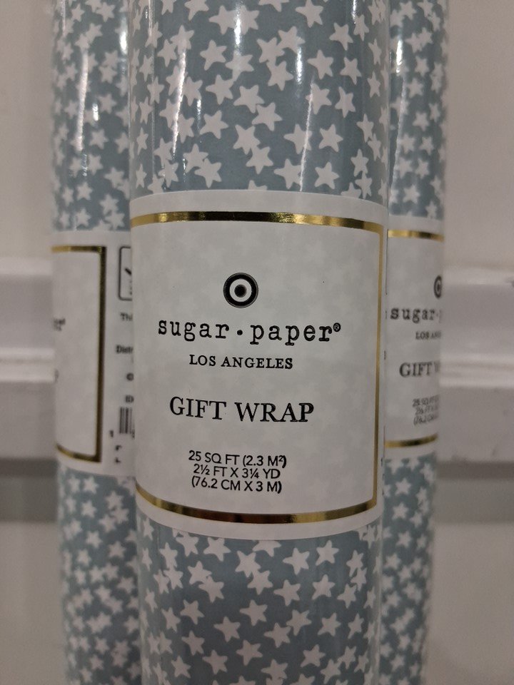 3pk sugar paper gift wrapping paper - 25 sqft - blue/white