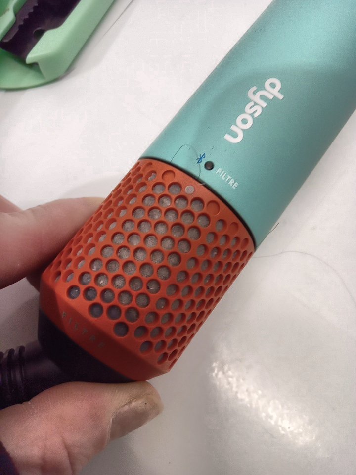 dyson has been previously used, debris in filter and hair on round brush attachment