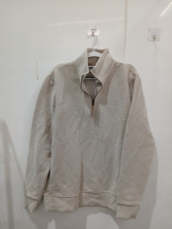 men's banana republic knit mock-neck half-zip sweatshirt - large, tall - oatmeal heatHer brown