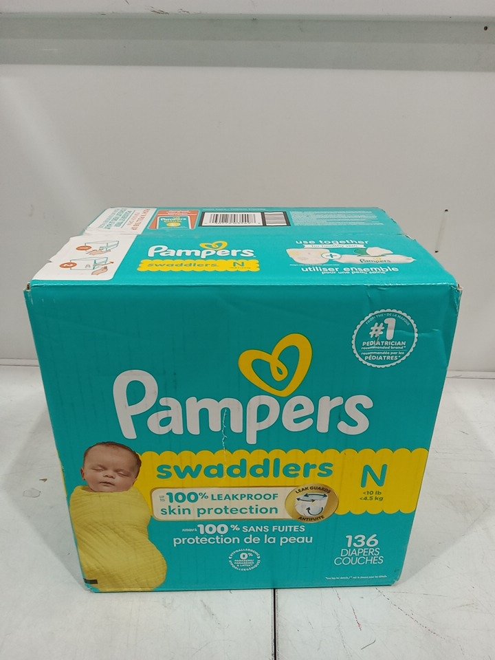 136PK PAMPERS SWADDLERS DIAPERS - NEWBORN SIZE 0