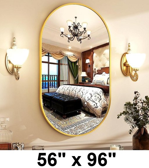 Oval wall mirror with Aluminum Frame - 56" x 96" - gold