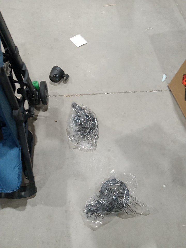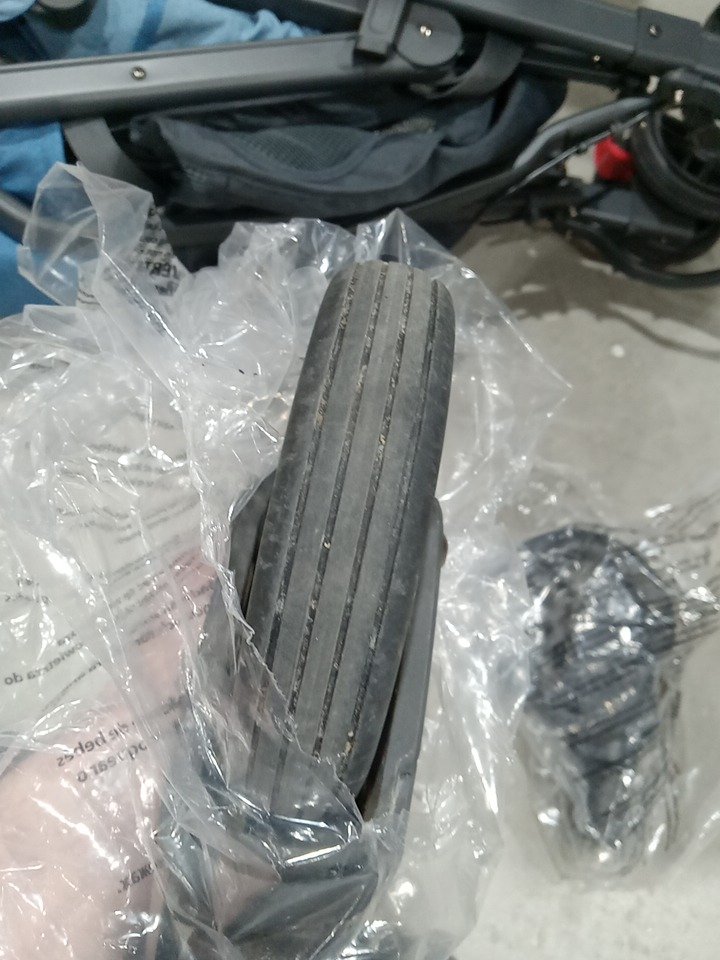 Upon inspection we have found some light dirt on the wheels meaning this item has been lightly used, all parts for use are present. see photos below.