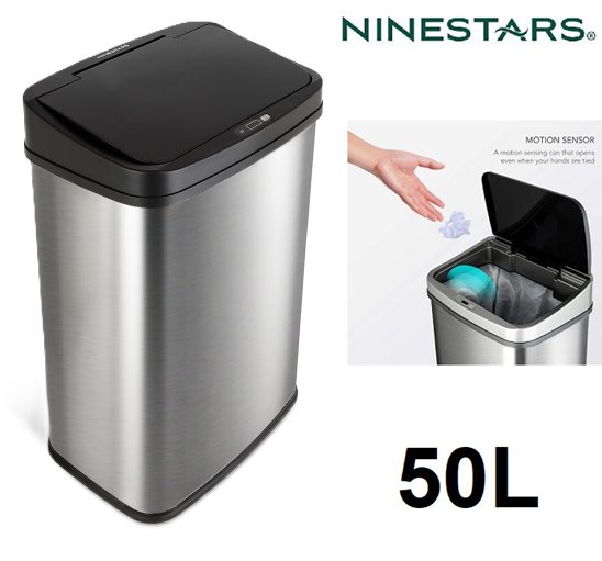 NINESTARS Large Motion Sensor Trash Can - 50 Litres - Black/SILVER (MODEL: DZT-50-28))
