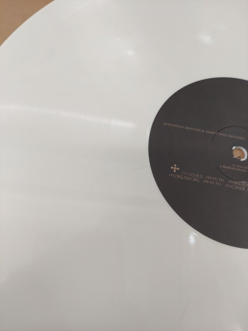 While the record appears new it arrived with a minor cosmetic line on the records a side but nothing that should effect play. see photos.