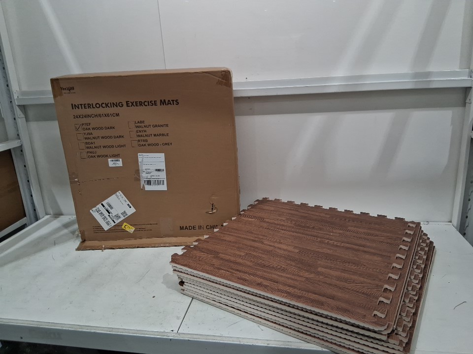 12PK YES4ALL Interlocking Exercise Foam Mats - 24" x 24" - DARK OAK WOOD (MODEL: P7EF)