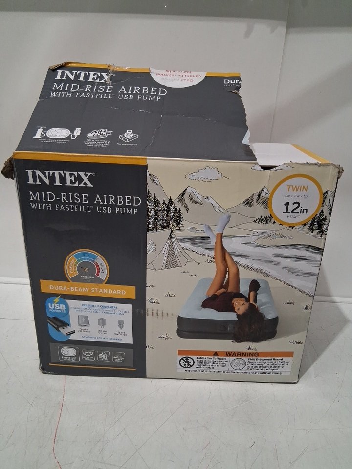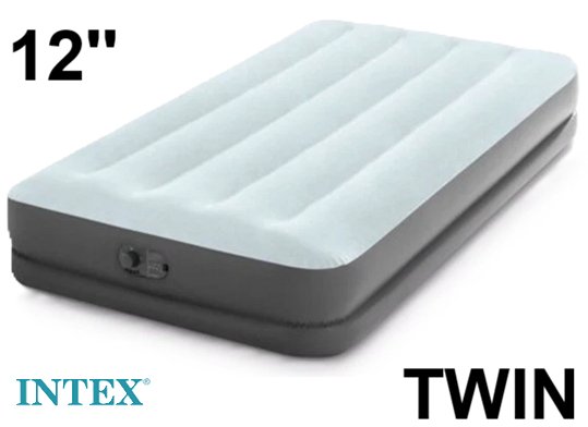 INTEX DURA-BEAM STANDARD MID-RISE AIR BED MATTRESS WITH USB ELECTRIC PUMP - twin, 12" H - LIGHT BLUE/DARK GREY (MODEL: I637USB / 66187T)