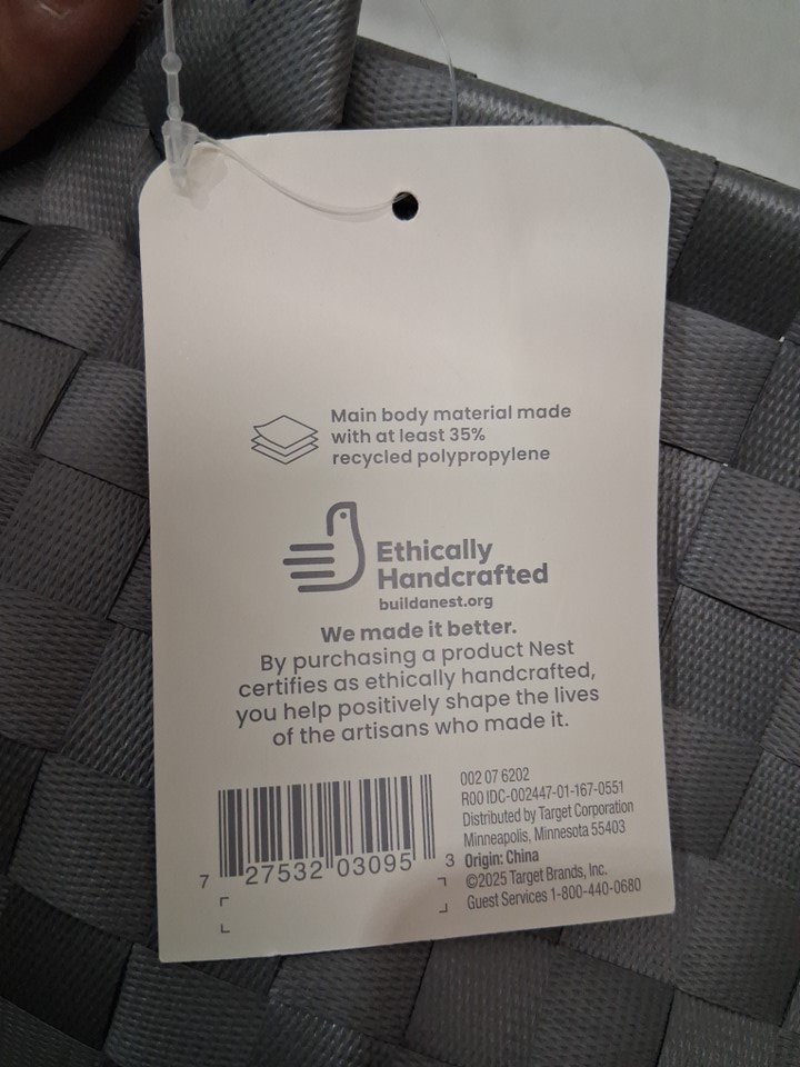 BRIGHTROOM WOVEN PLASTIC BASKET - SMALL - GREY