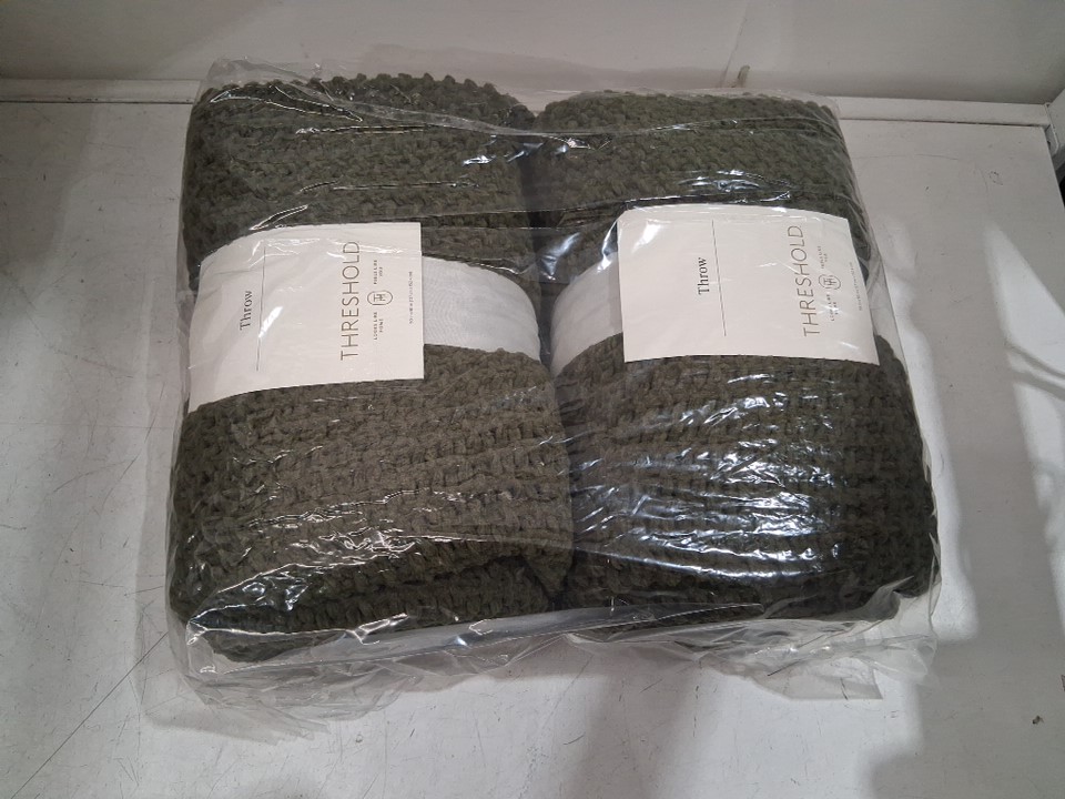 2pk threshold fleece knitted throw blanket - 50'' x 60'' - green