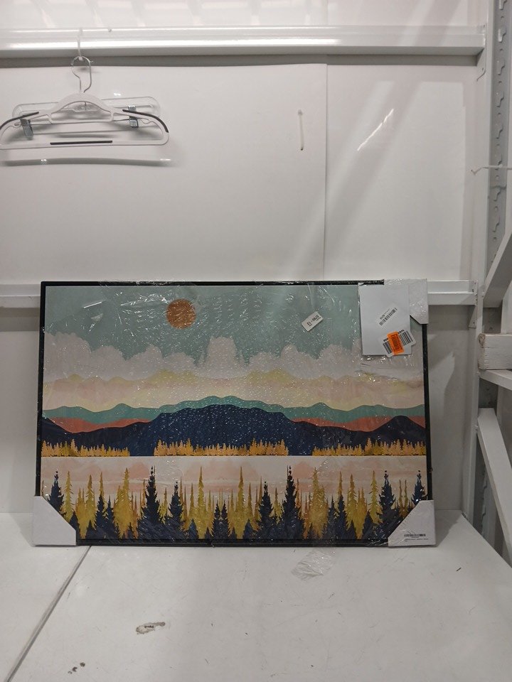 SIGNFORD Boho Mid Century Modern Abstract Framed Mountain Landscape Wall Art - 24" x 36" - black/variety of colors