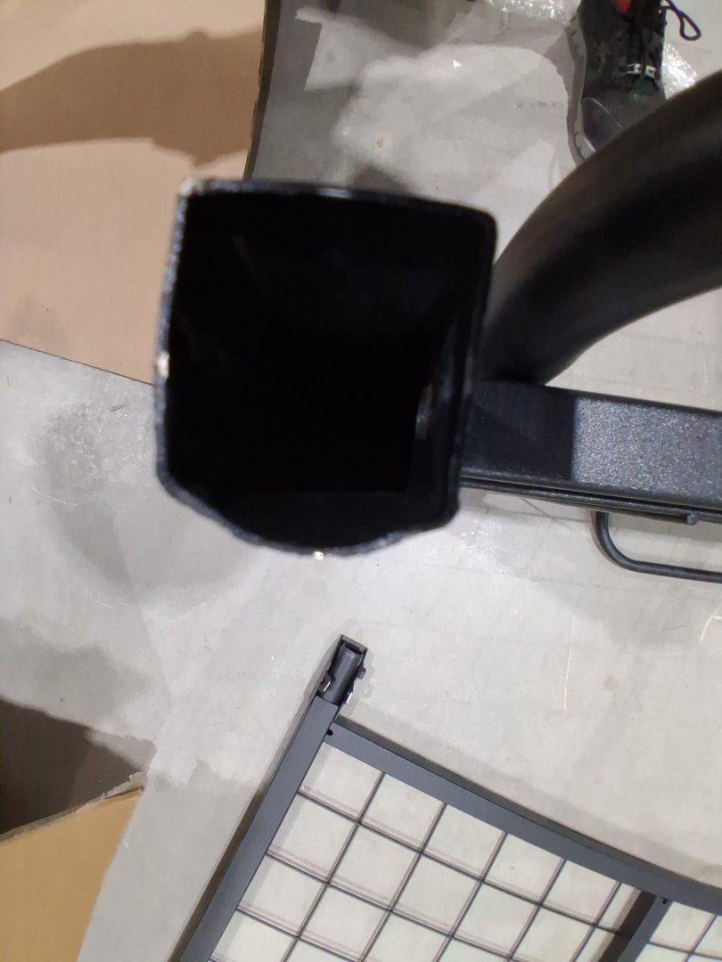 The poles seem to be a bit warped but still fit together, also missing the center support bar.