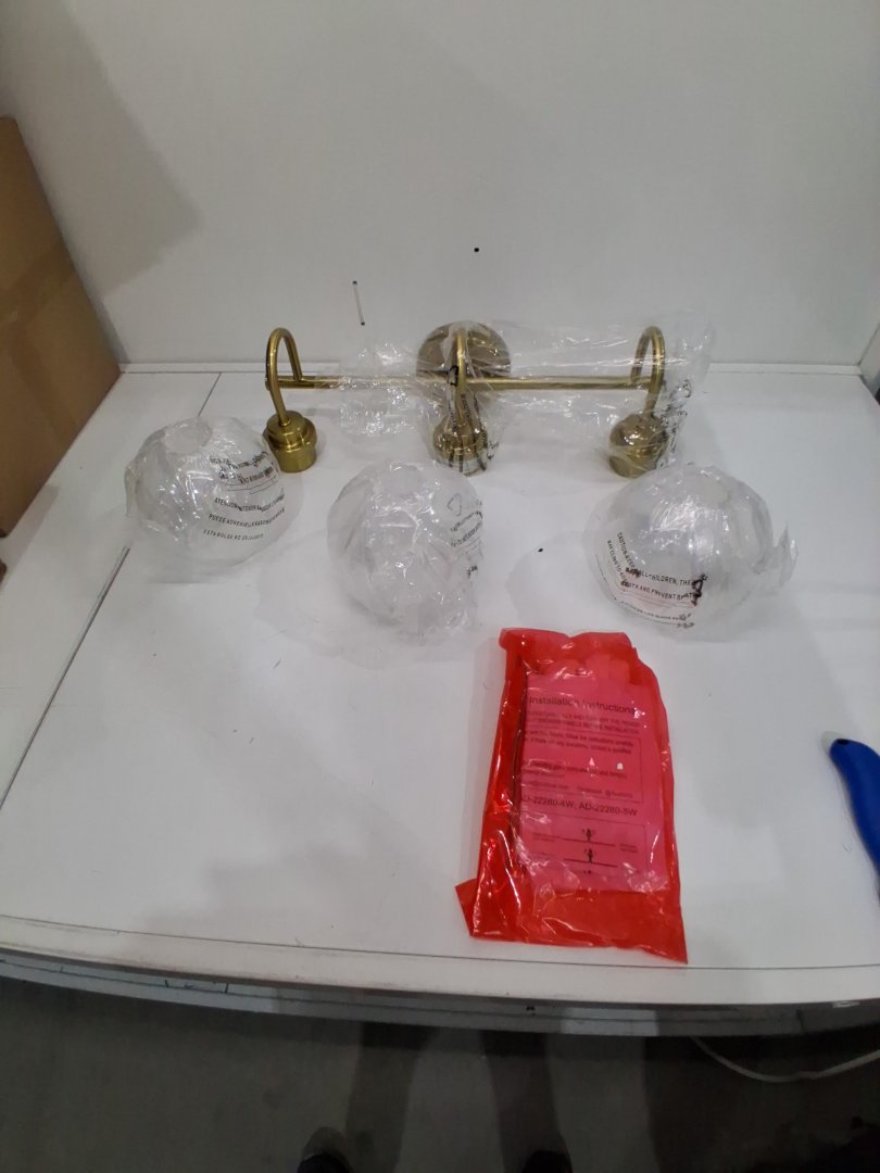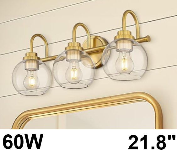 Audickic Over Mirror bathroom light fixture with Globe Glass - blushed gold (Model: AD-22280-3W-GD)