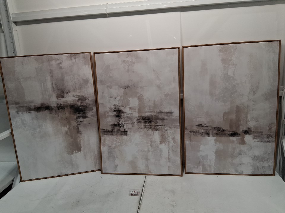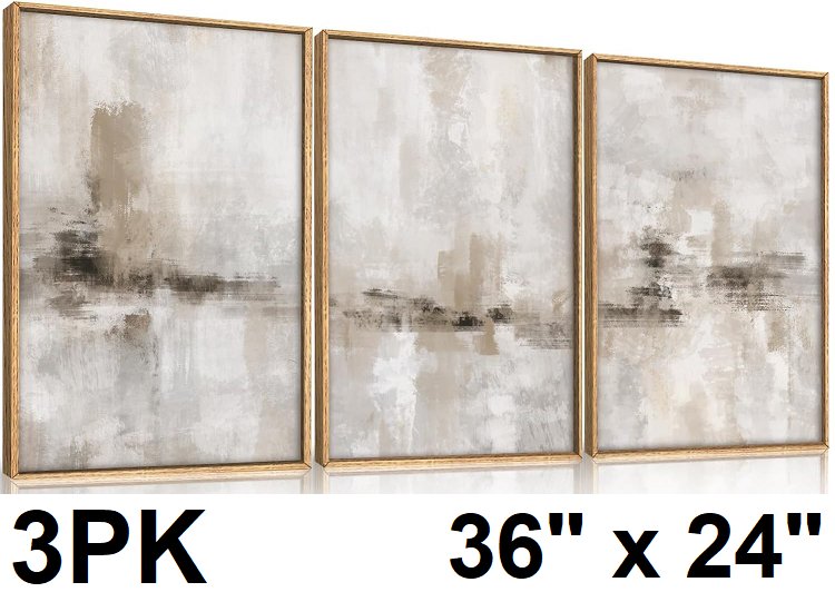 3pk Ausril Large Minimalist Textured Framed Abstract Wall Art Set - 36" x 24" - beige/grey