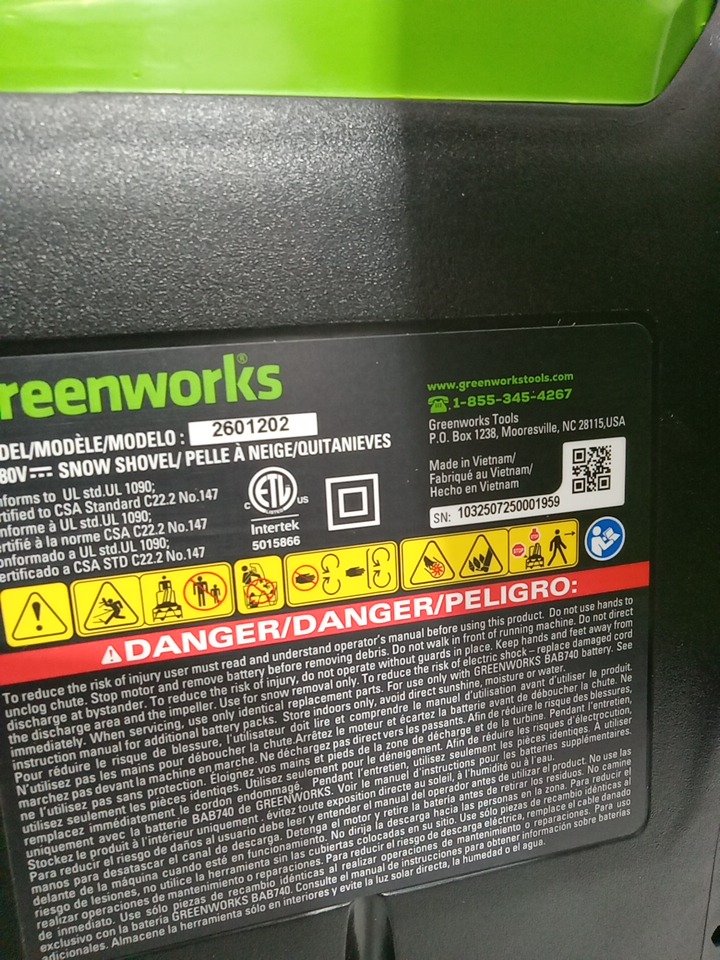 GREENWORKS PRO 80V 12" CORDLESS SNOW SHOVEL - *TOOL ONLY* (MODEL: 2601202)