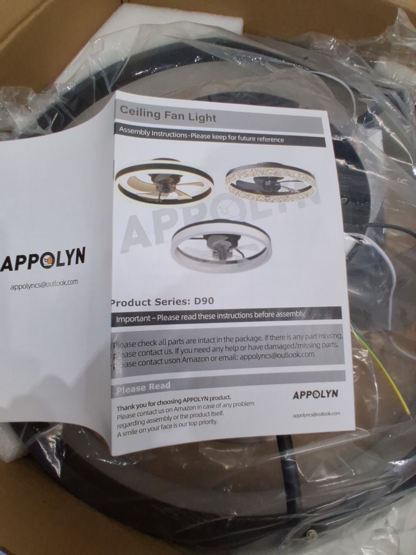 appolyn ceiling fan with lights - 20" 4960 to 8060LM 3000K to 6500K - black (model:D90CA01101)