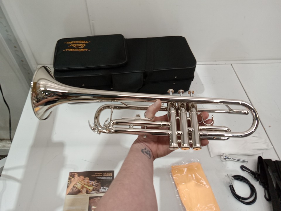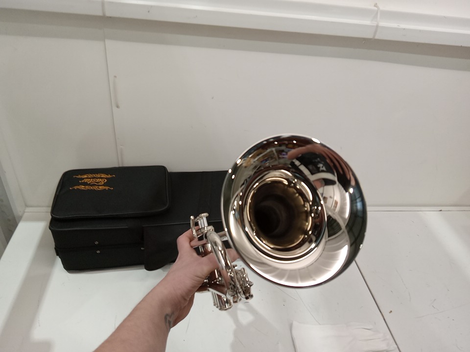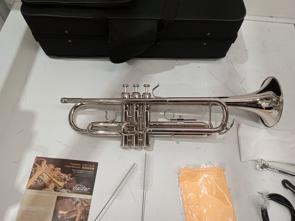 EASTAR STANDARD BB TRUMPET SET FOR BEGINNERS WITH CARRYING CASE, 7C MOUTHPIECE AND TRUMPET CLEANING KIT - SILVER (MODEL: ETR-380)