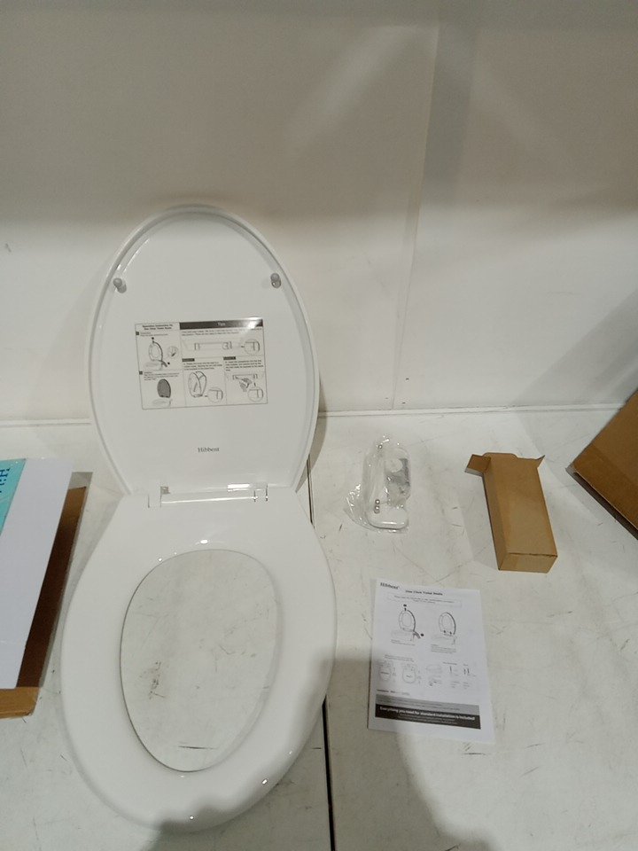 HIBBENT PREMIUM ONE CLICK ELONGATED TOILET SEAT WITH COVER - OVAL - EASY INSTALL AND QUICK RELEASE SEAT FOR EASY CLEAINING - SOFT CLOSE - 18.5" LENGTH - WHITE (MODEL: 1CLICK40V)