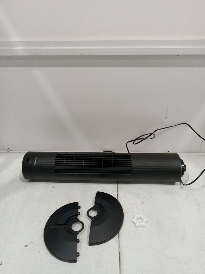 The remote and the manual are missing from the original packaging. There are scratch marks on the base stand and sides of the tower fan due to previous use. Tested for power and motor function only. (Please see photos)