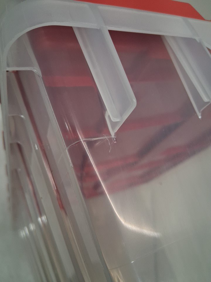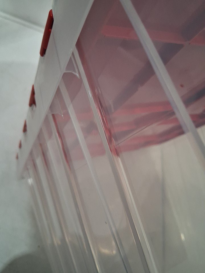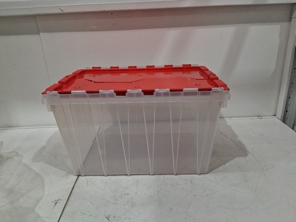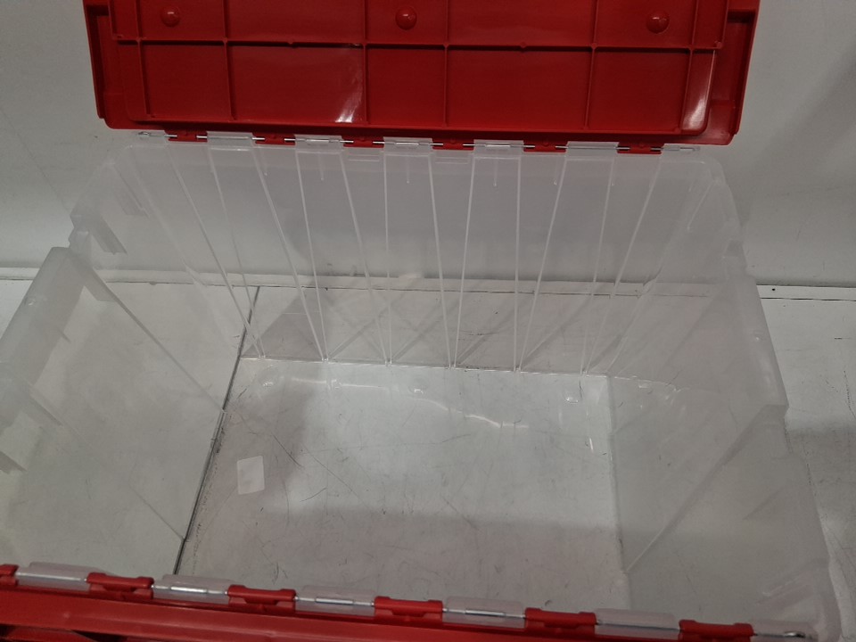 AKRO-MILS KEEPBOX PLASTIC STACKABLE STORAGE CONTAINER WITH LID - 12 GALLON - RED/CLEAR (MODEL: 66486CLRED)
