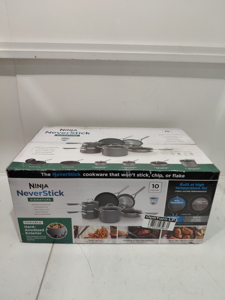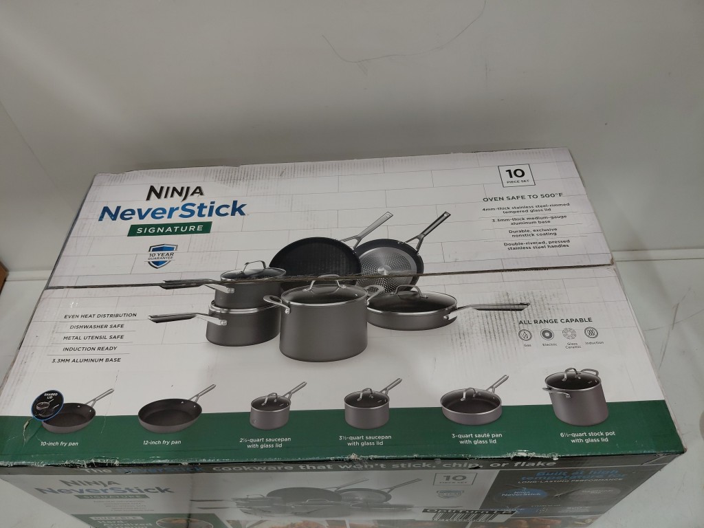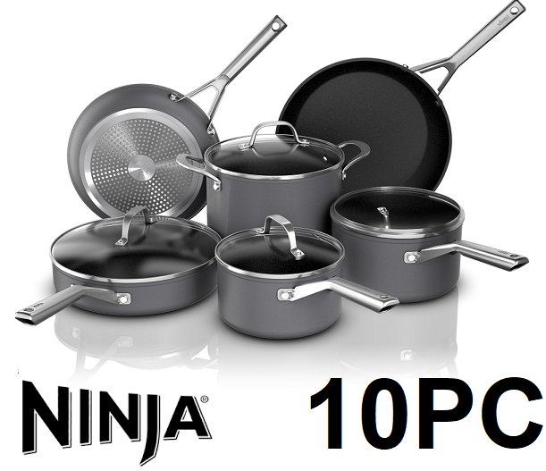 10PC NINJA NeverStick Signature Hard-Anodized cookware set - black (model: CW79010a)