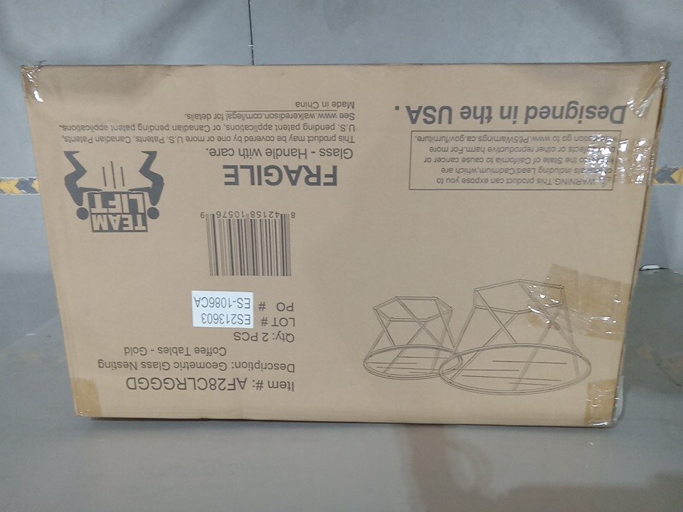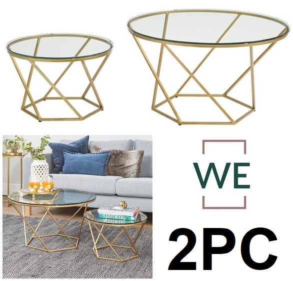 2pc walker edison metal geometric glass-top nesting coffee tables - 28" x 28" x 16" & 18" x 18" x 12" - gold (model: AF28CLRGGGD)
