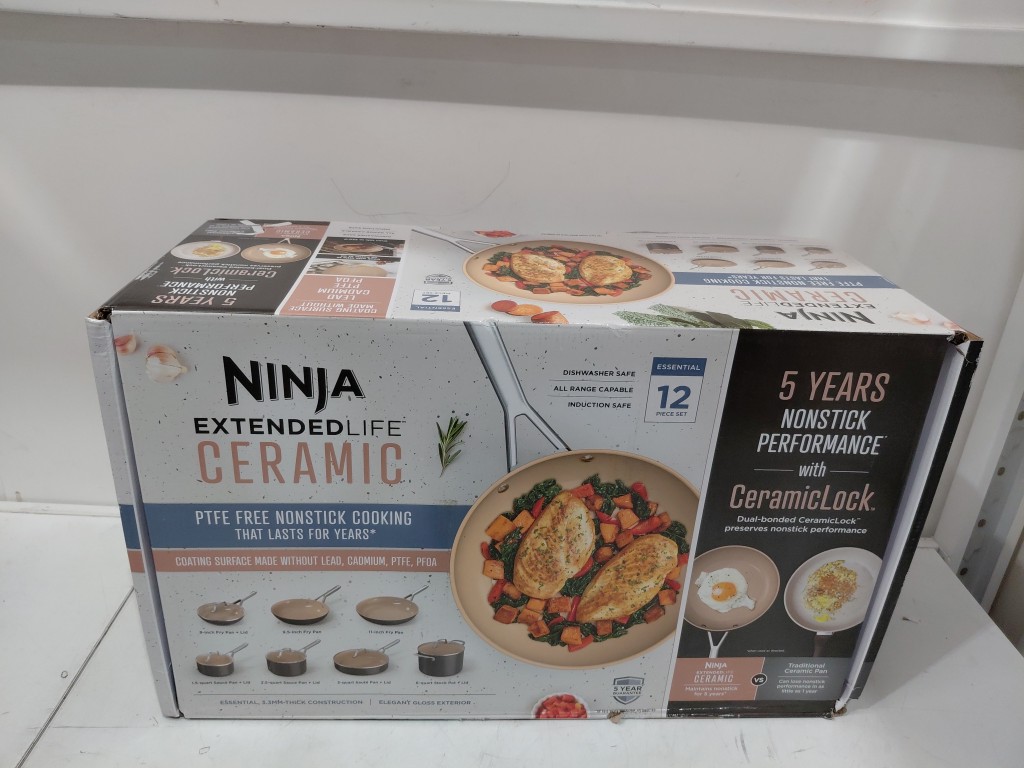 12PC Ninja Ceramic Extended Life NONSTICK Cookware Set - BLACK/BROWN (MODEL:CW89900)