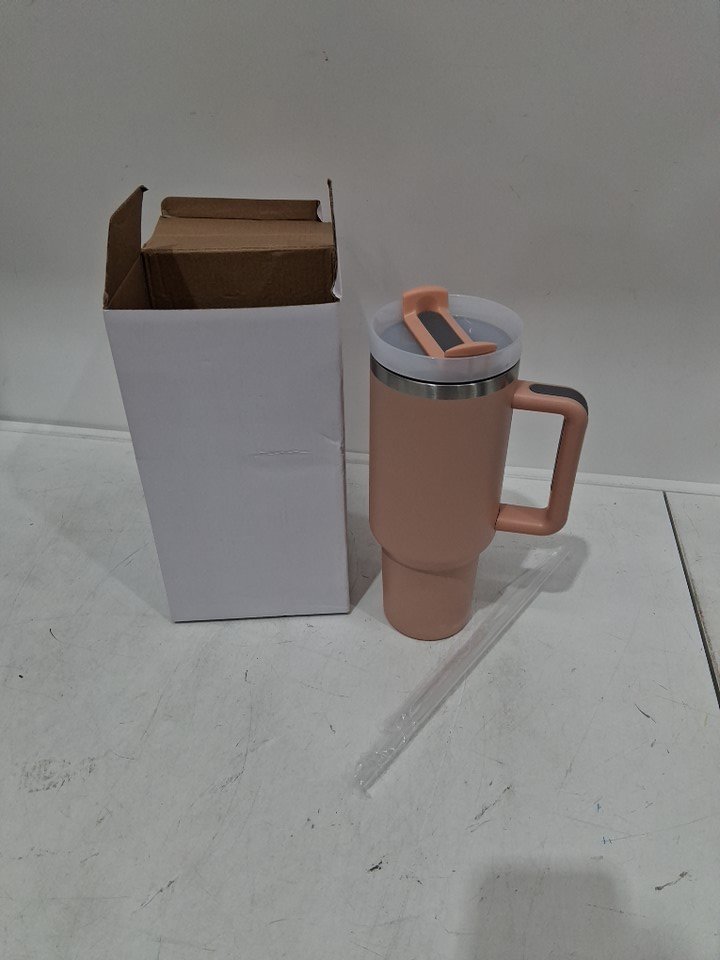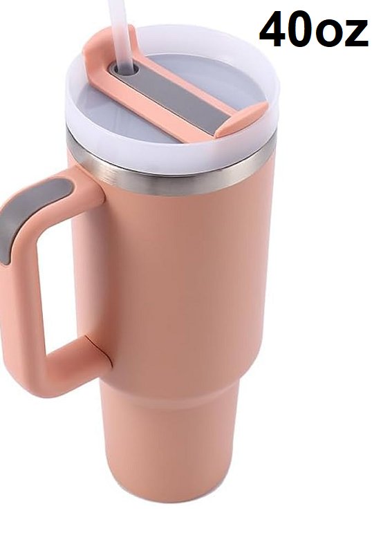 insulated stainless steel tumbler with handle and straw - 40oz- pink