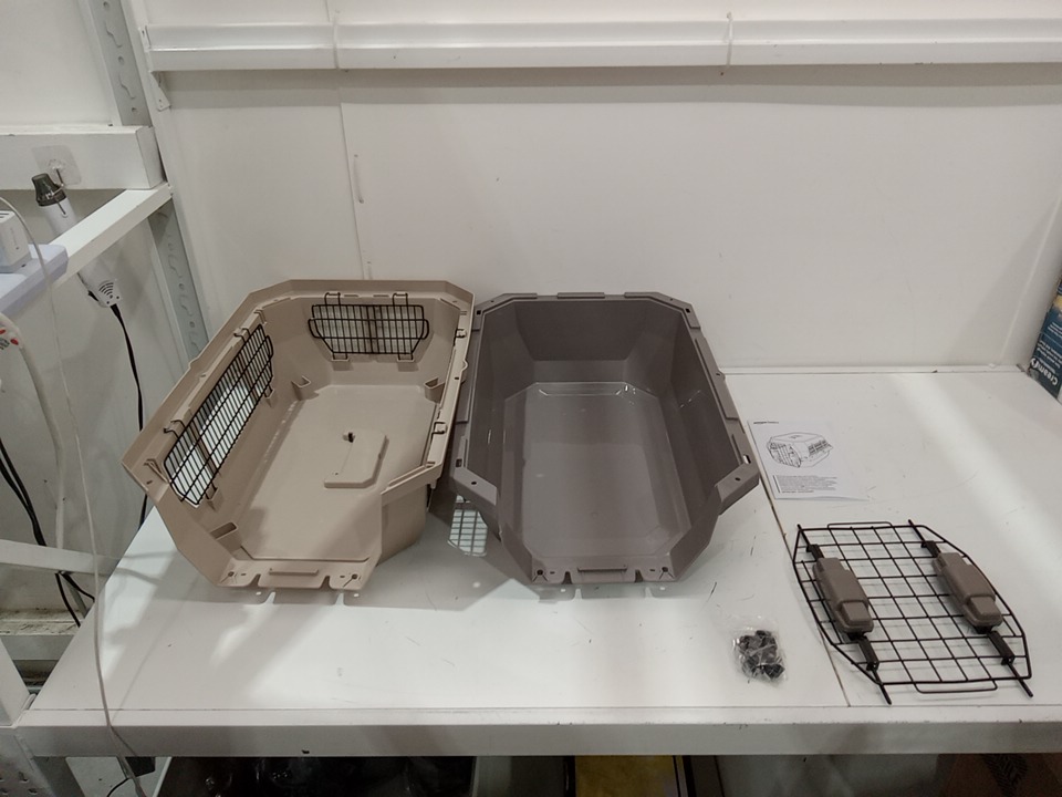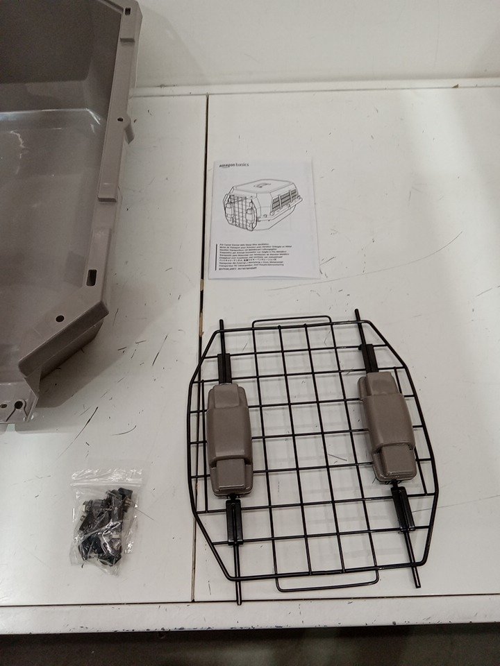 AMAZON BASICS PET CARRIER KENNEL WITH WIRE VENTILATION - 23" - BEIGE/GREY